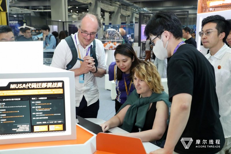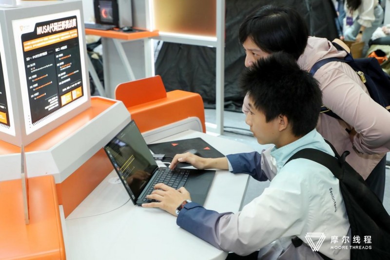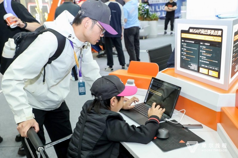 展区内吸引了大量编程少年和科技爱好者,摩尔线程的摩尔学院通过提供易于上手的开发工具和丰富的学习资源,让更多人可以学习GPU开发。展会现场,孩子们围在算力设备前,有的在调试人生第一行代码,有的已经能完成简单的MUSA迁移。