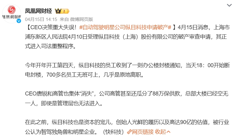 押注L4自动驾驶的公司也接连传来不好的消息,通用汽车对旗下专注自动驾驶的子公司Cruise“断供”后,后者开始大幅裁员;国内智能驾驶明星公司纵目科技也在本月向法院申请了破产,这家曾估值超90亿元的智能驾驶领域明星企业正式进入司法重整程序。