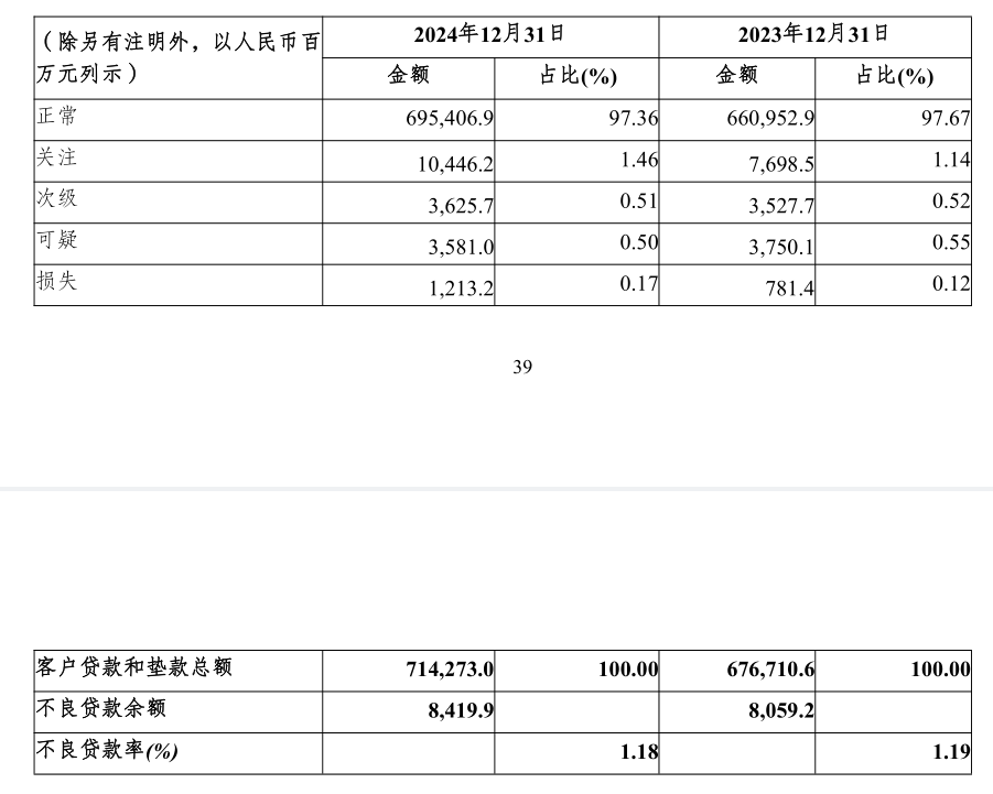 年报显示,该行不良贷款率下降0.01个百分点至1.18%,不良贷款余额84.2亿元,同比增加了3.52亿元。