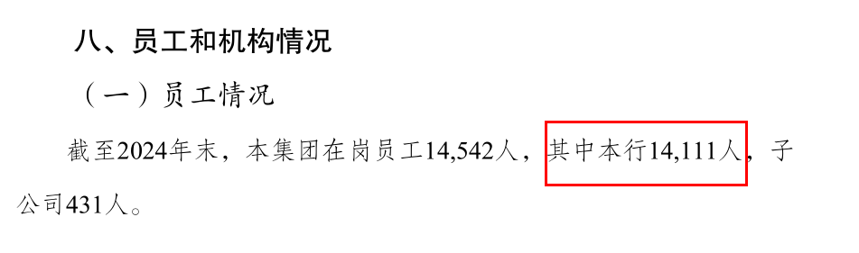 成本下降的同时,员工人数也在所下降。截至2024年末,重庆农商行员工人数为14111人,较2023年末减少479人。