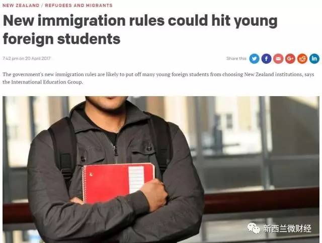 新西兰的教育机构提出,政府的移民新政很有可能将很多年轻海外学生拒之门外,这对新西兰的出口教育产业将产生极大冲击。很多学生可能因为感觉来新西兰落脚难度太大而放弃前来留学的打算。