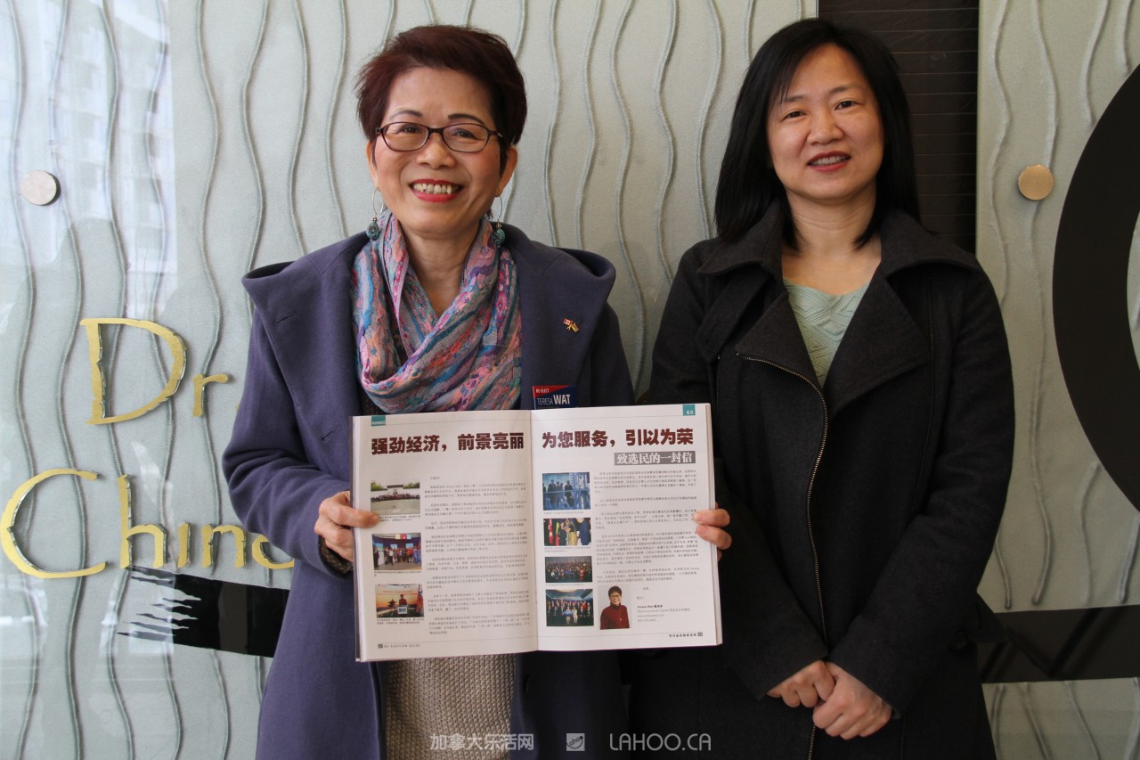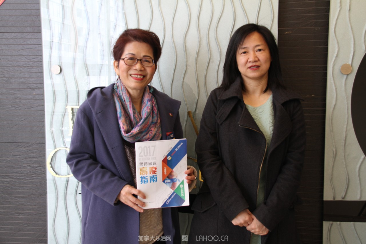 卑诗省自由党列治文北中心选区(Richmond North Center)候选人屈洁冰Teresa Wat持刚刚出炉的《2017卑诗省选高度指南》与笔者合影