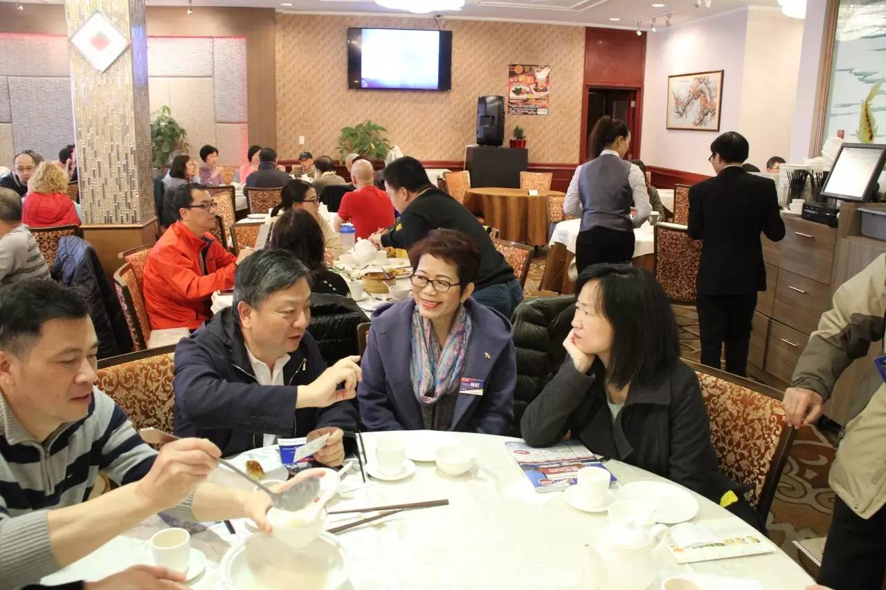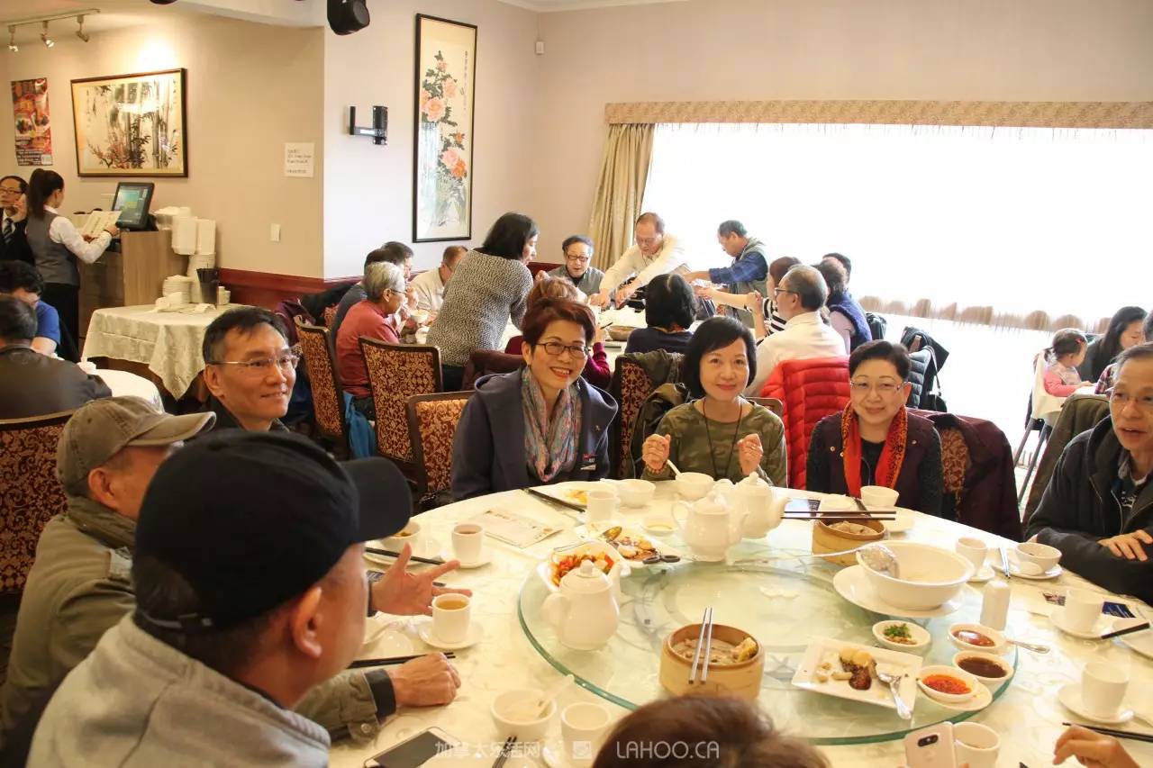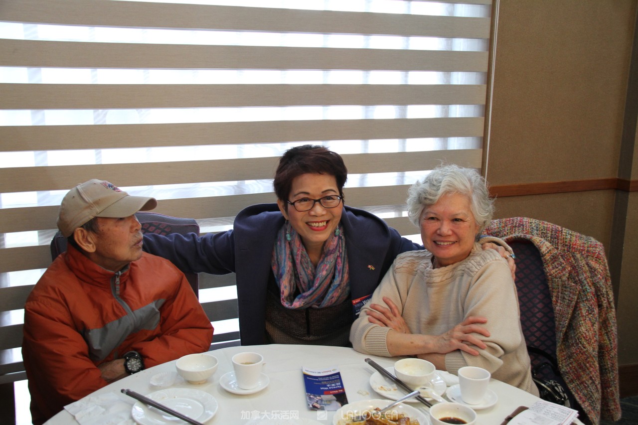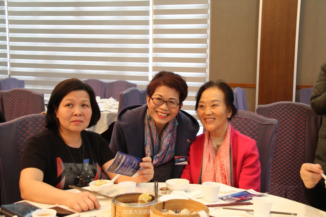这一桌是香港移民,是自由党积极支持者,也非常关心政治,关心自由党的下一个四年的政纲,屈洁冰女士马上坐下很认真的沟通、交谈。
