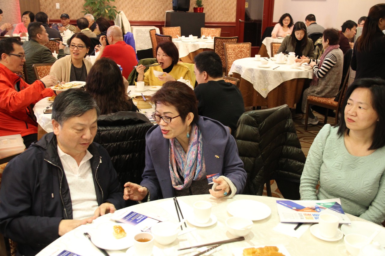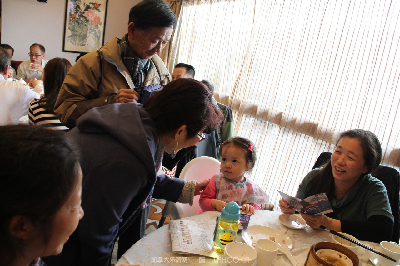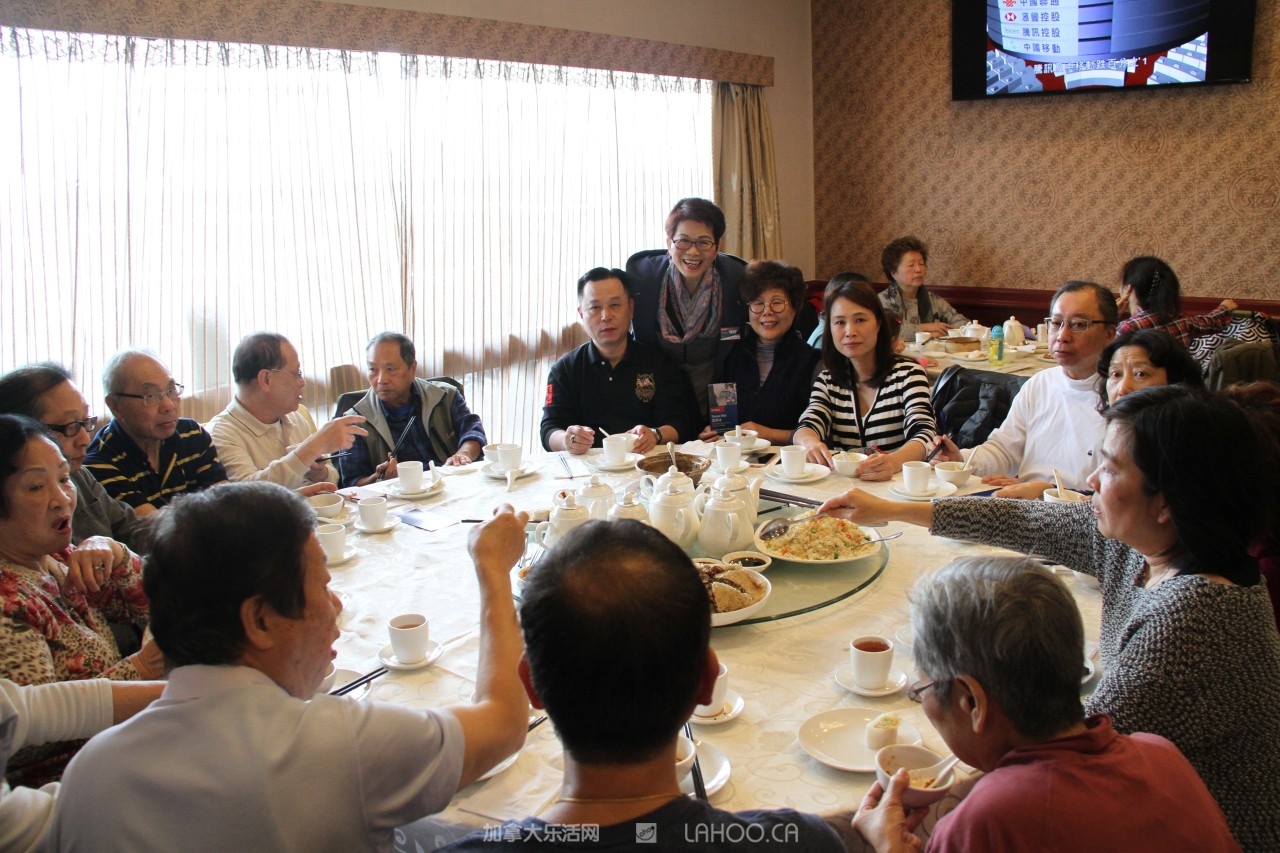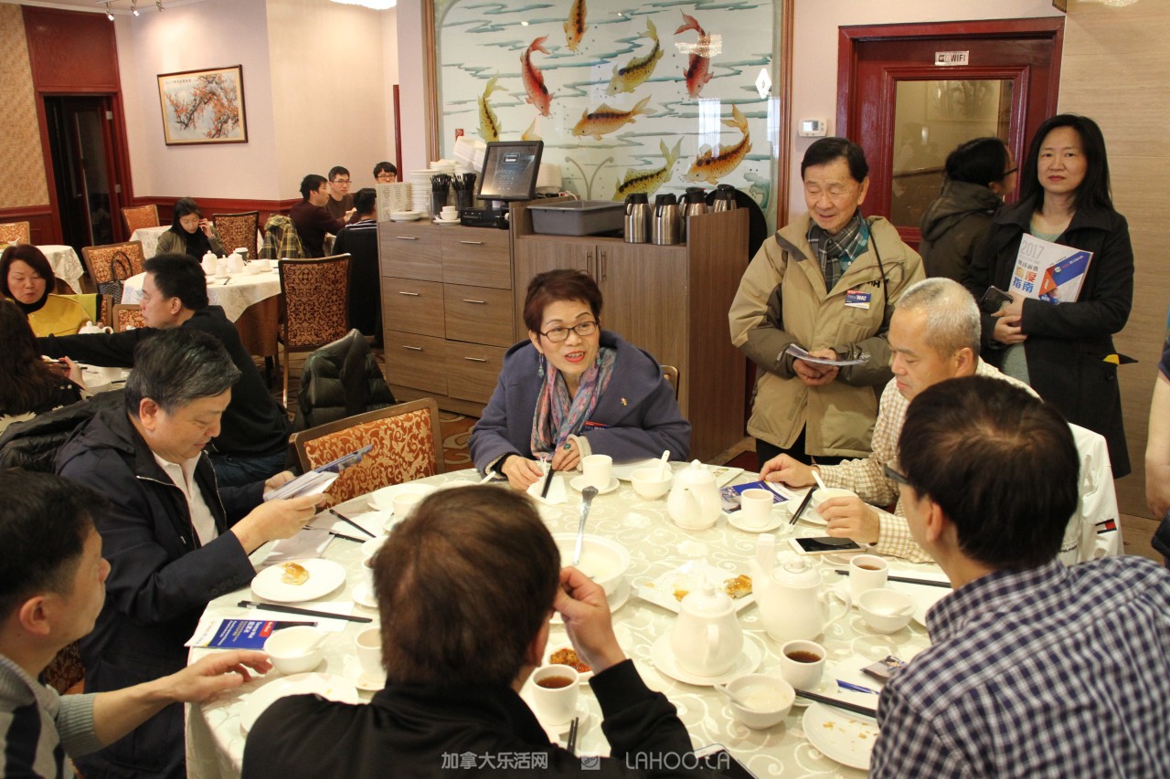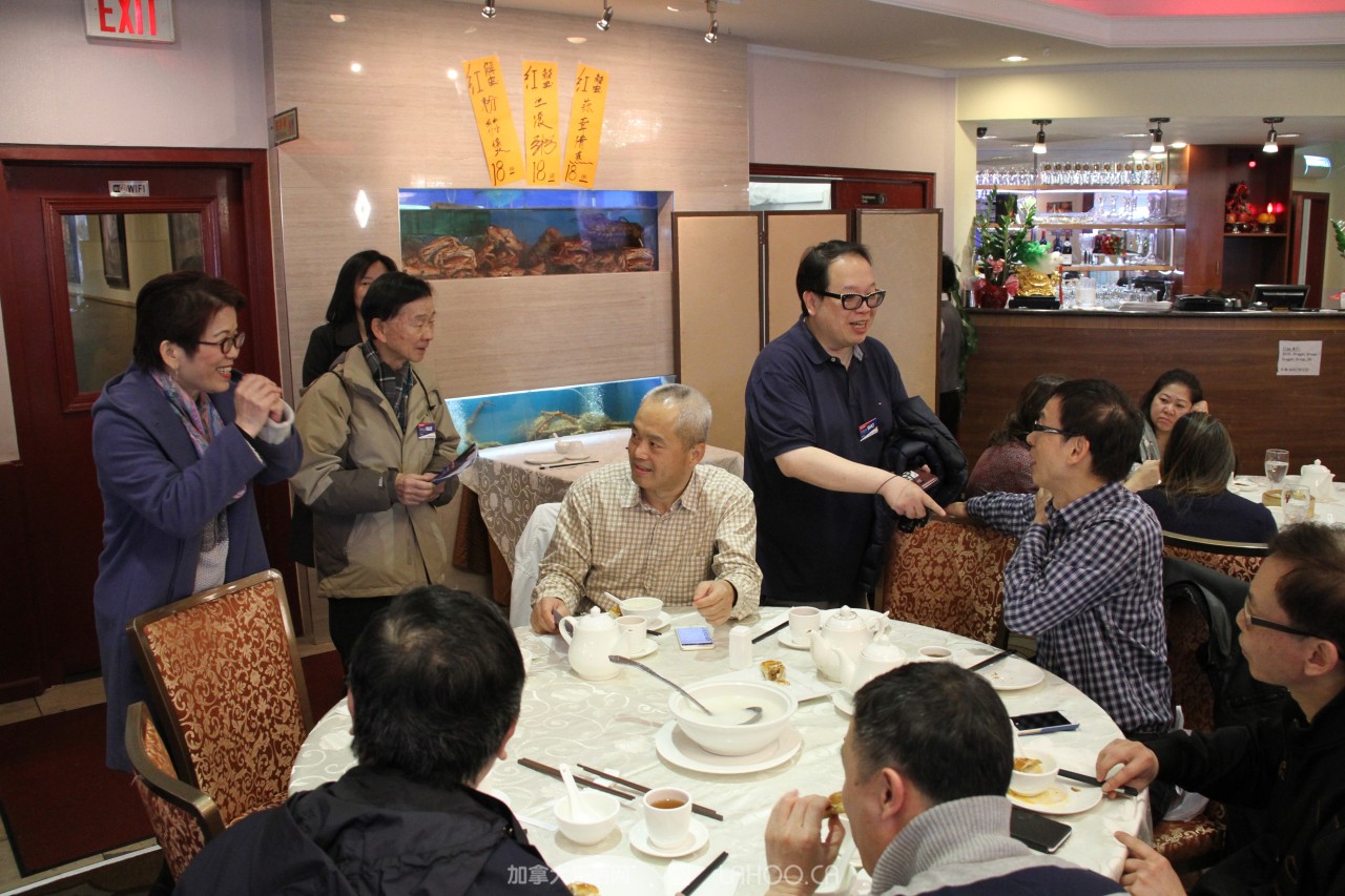 这一桌是香港移民,是自由党积极支持者,也非常关心政治,关心自由党的下一个四年的政纲,屈洁冰女士马上坐下很认真的沟通、交谈。
