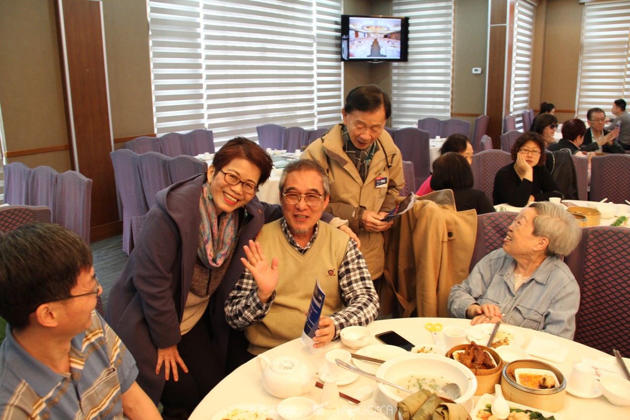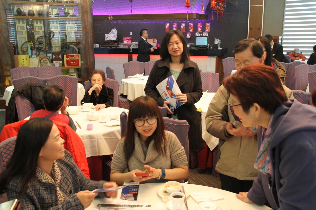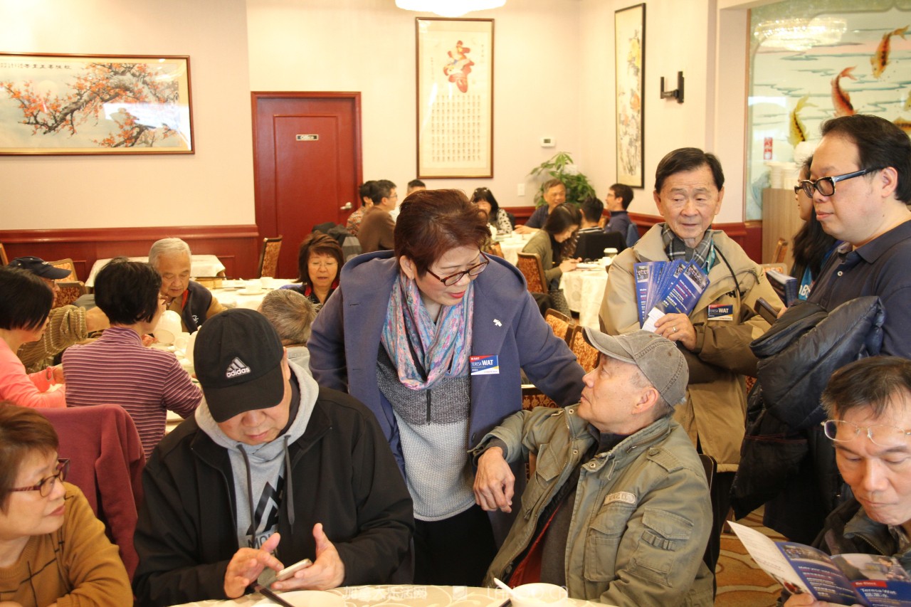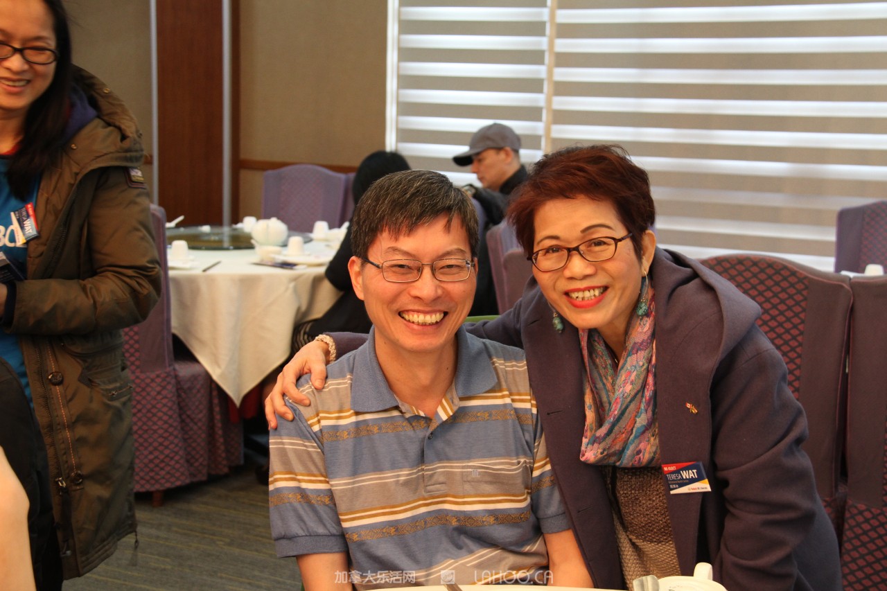 这一桌是香港移民,是自由党积极支持者,也非常关心政治,关心自由党的下一个四年的政纲,屈洁冰女士马上坐下很认真的沟通、交谈。