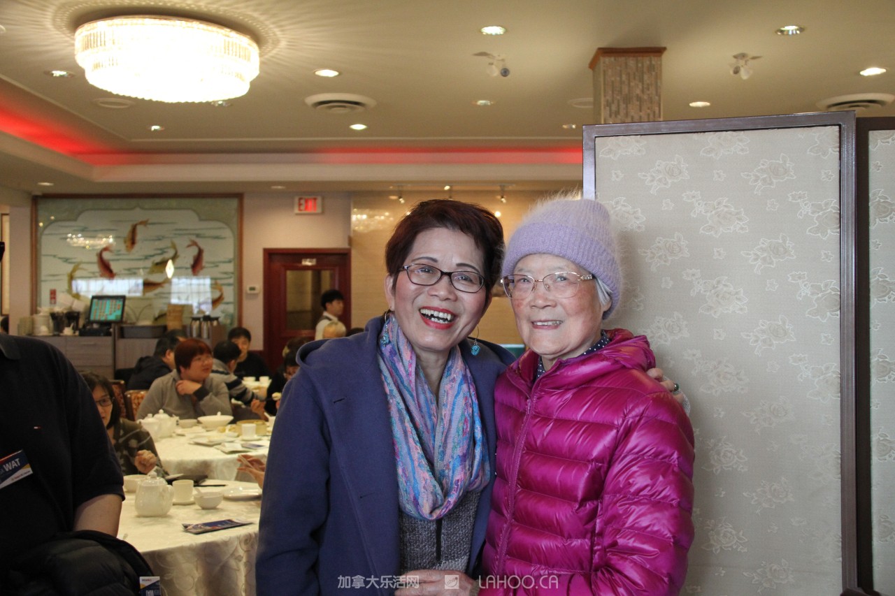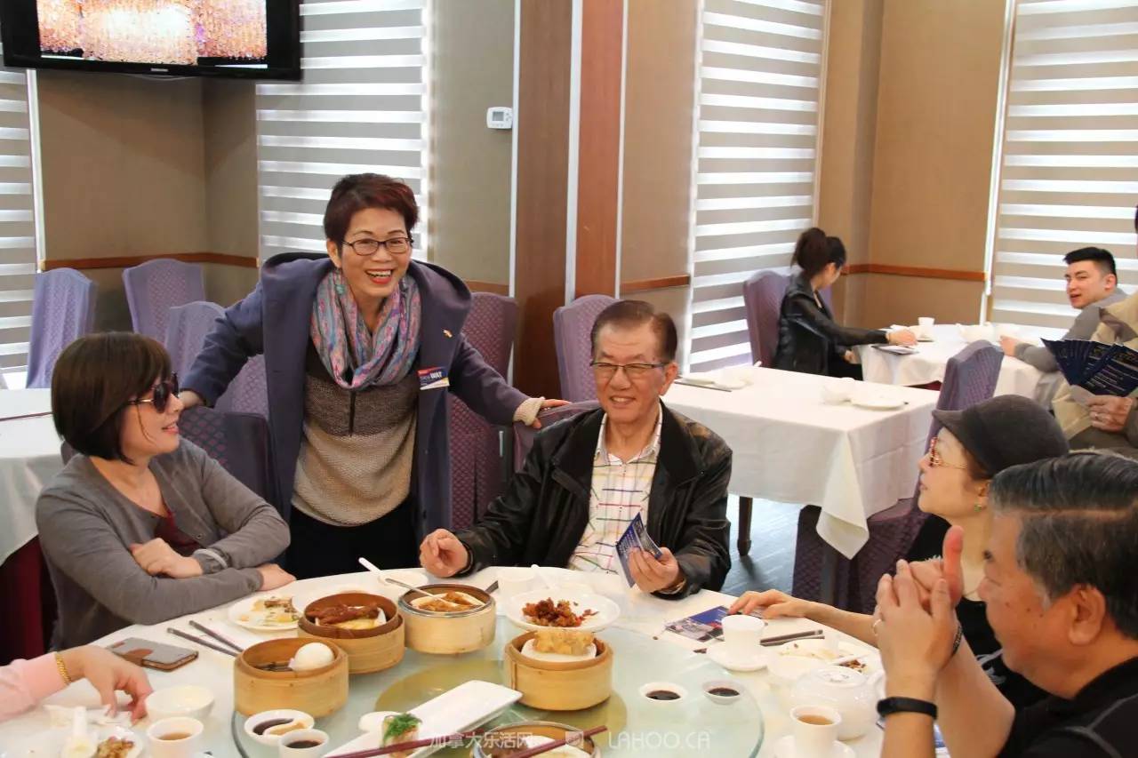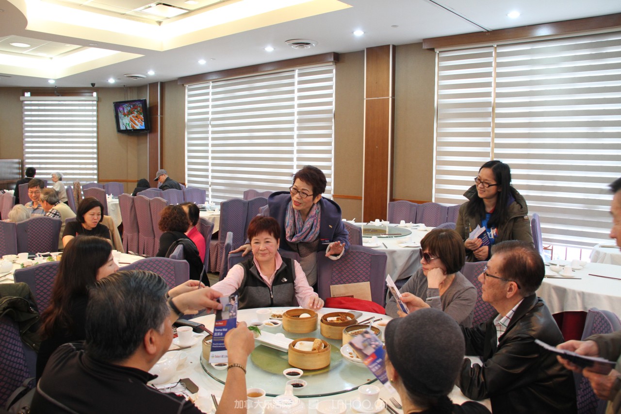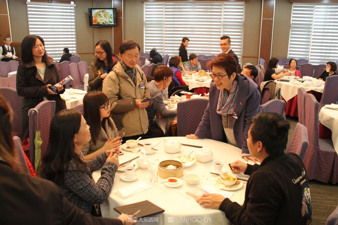 这一桌来自菲律宾移民,屈洁冰马上用英语亲切交谈,谈到自己去过马尼拉,并且在大温地区经常会去菲律宾社区走访,参加社区活动