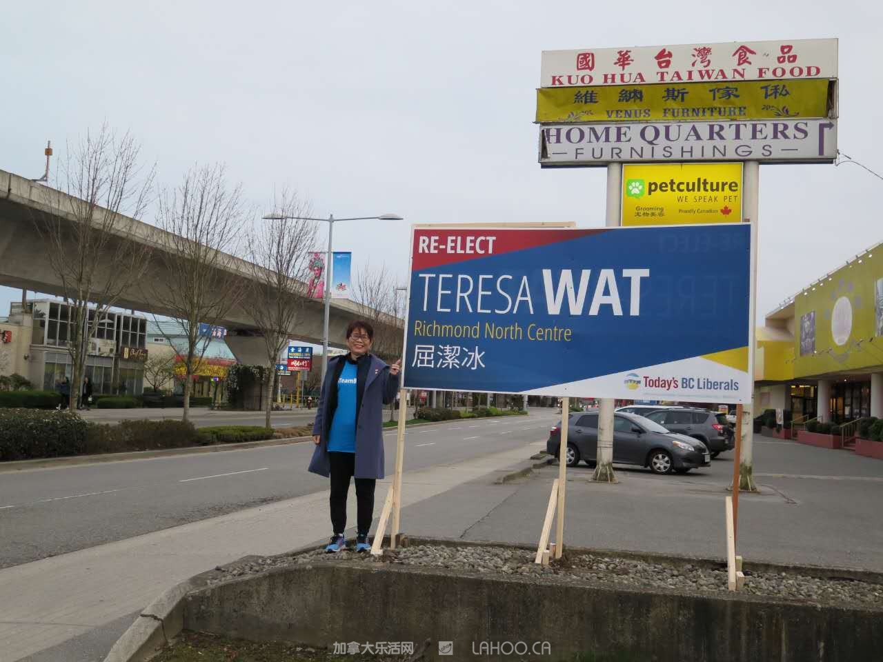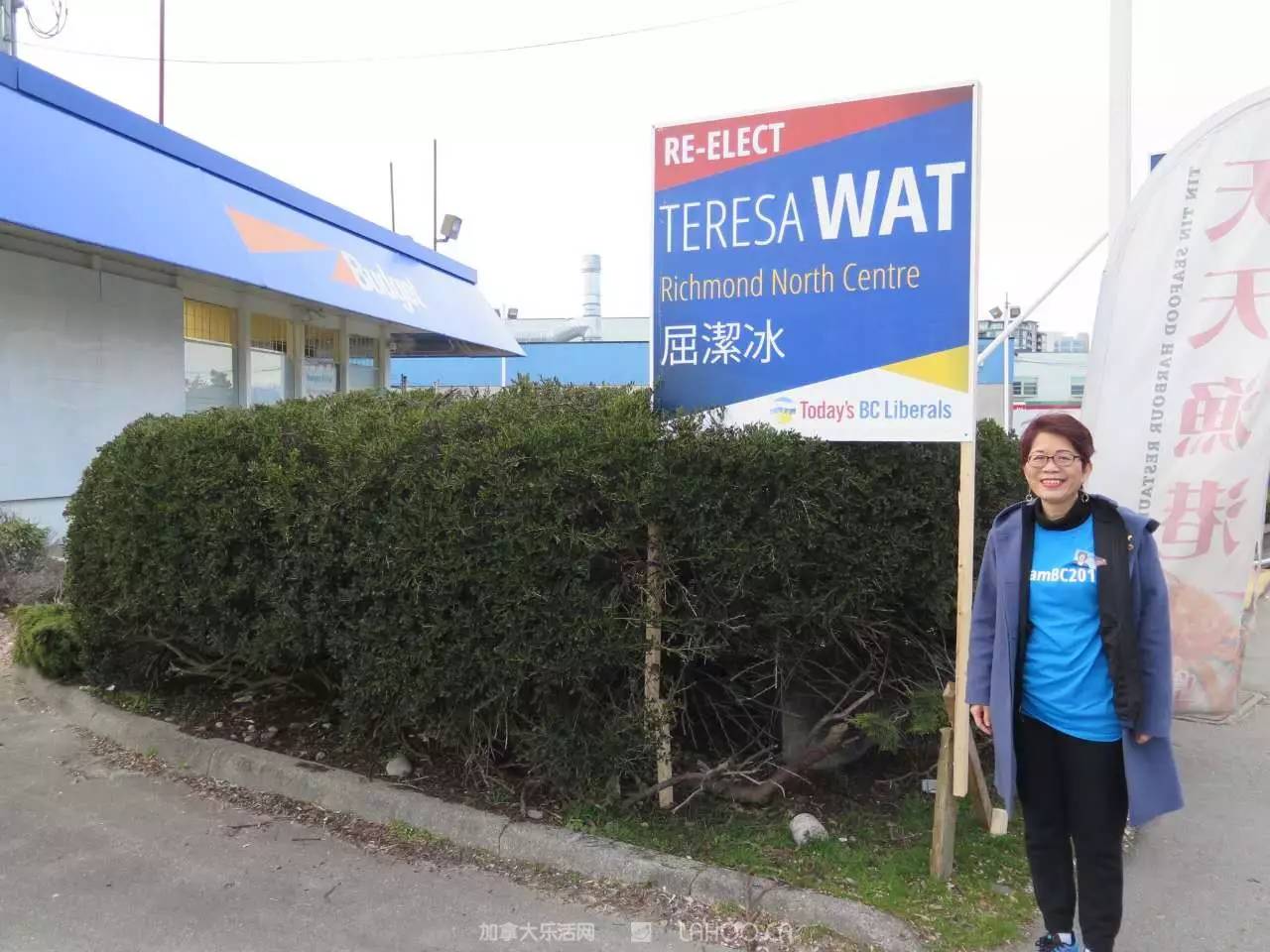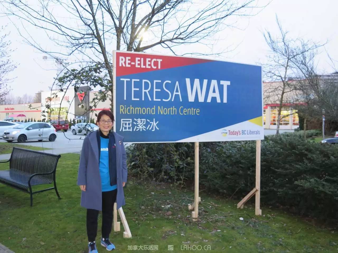 卑诗省自由党列治文北中心选区(Richmond North Center)候选人屈洁冰Teresa Wat的这次竞选口号是:强劲经济,前景亮丽,为您服务,引以为荣!