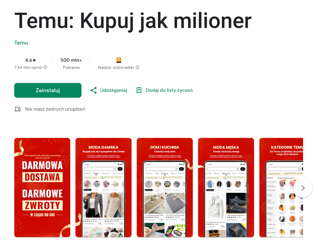 4月,据波兰媒体Mediapanel报道,Temu在波兰地区的用户数量上升至1810万,超越波兰本土电商巨头Allegro的1780万,成为波兰用户量最高的电商平台。
