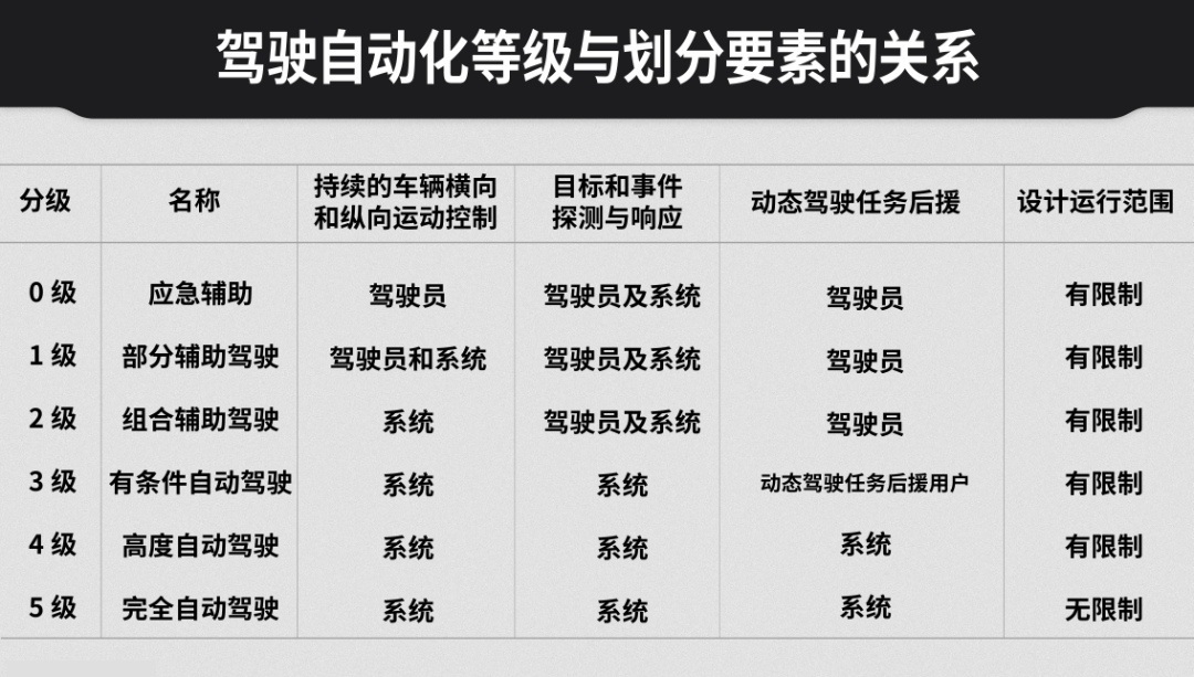 与L2级及以下辅助驾驶存在本质区别的是,从L3级开始,车辆的控制权逐渐从人类驾驶员手中让渡到自动驾驶系统。