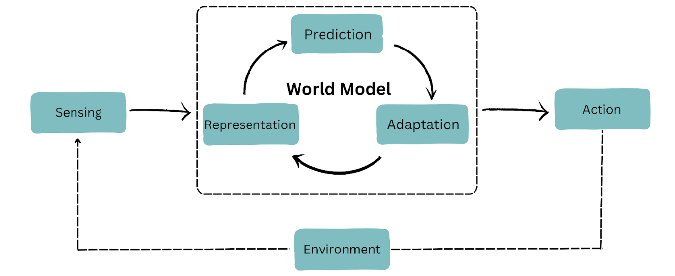 借鉴这一机制,世界模型旨在为人工智能系统提供一个内部环境的模拟,使其能够预测外部世界的状态变化,从而在不同情境下做出适应性决策。