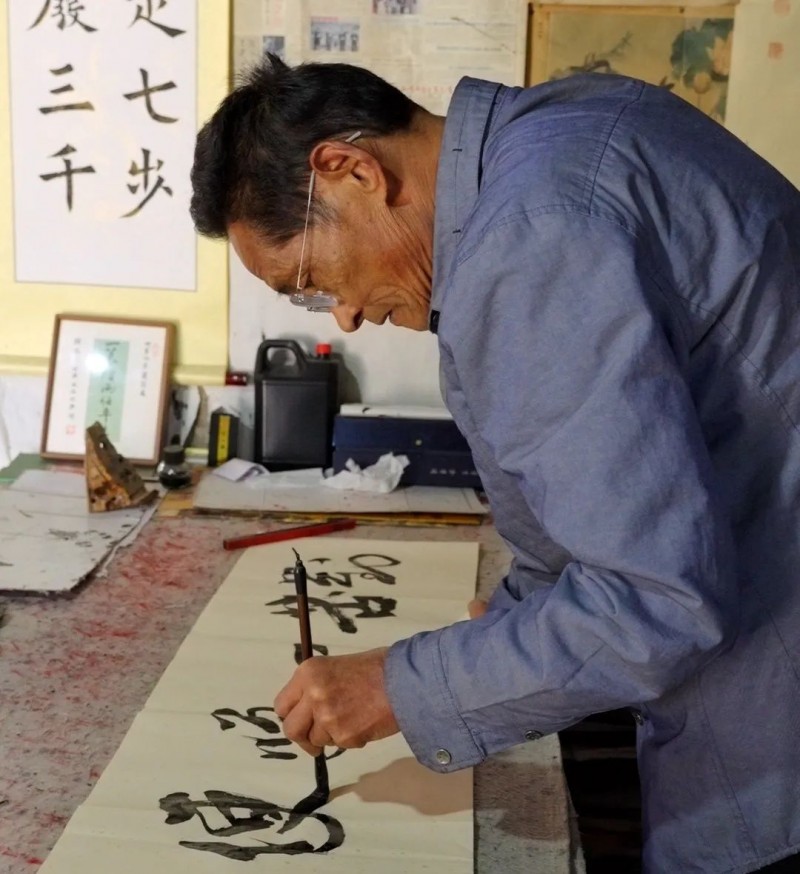 杜深忠一直没有停止书写。每天,他都会在桌前铺开一张宣纸,琢磨笔画、结构,有时一写就是几个小时。
