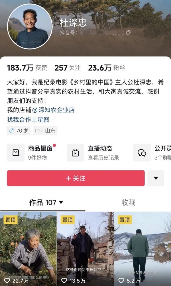 @杜深忠 抖音账号已收获23.6万粉丝关注