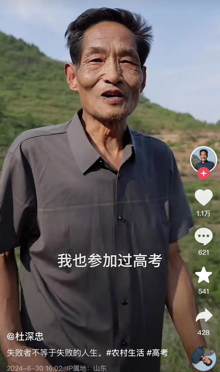 在那些短视频里,他讲述四季更替,也谈论生活感悟。年轻的网友问他,高考落榜了怎么办?他提起自己的经历:“恢复高考那年,我也去参加考试了。发榜之后,发现自己离大学的门槛实在差得太远。我年轻时也有理想有追求,虽然这辈子一事无成,但是你看我现在,不也是自由地在这个世上行走,没觉得多丢人。人这一辈子,只要把握住自己的定位,找到自己喜欢的事就可以了。”