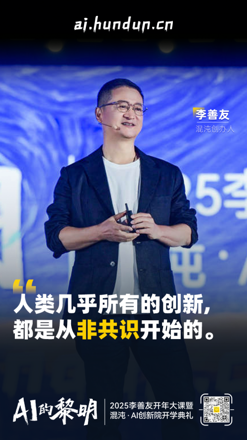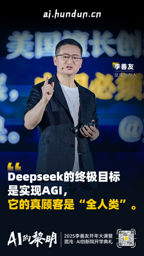 这是李善友对 DeepSeek 的定性,更是对混沌 AI 创新院的期许:培养 “敢于在有限条件下创造无限可能” 的创业者,让每个 1 号位都成为 “中国 AI 的破局点”。