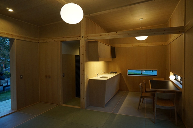 说是别墅,其实面积只有 9.1 平方米,无印良品将其命名为“HUT”(茅屋)倒是很符合实情。根据外壁材质的不同,无印良品的别墅分为铝合金、软木和木质三种。