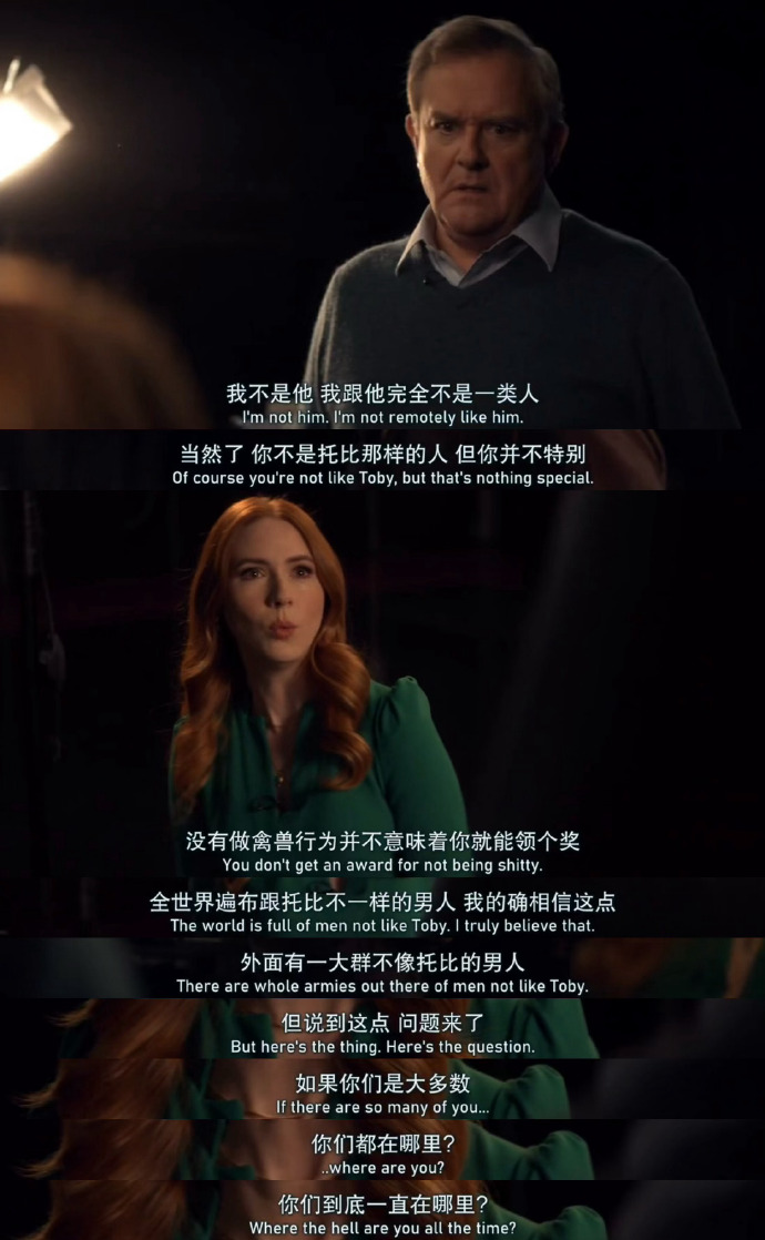 例如,女权为搞职场性骚扰的两个男性角色提供了勾搭猎物的新话术,网民对厌女笑话的敏感只让名嘴感到麻烦,殊无自省悔改的心态。也正是这种懒惰让他成为职场性骚扰的隐性帮凶,以及女主最终选定的复仇对象。