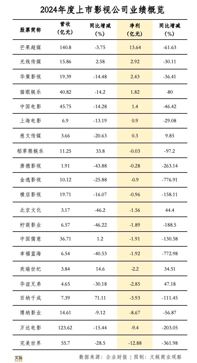 营收增了,利润跌了;爆款有了,业绩没了……上市影视公司的2024年度财报,写满了行业的魔幻与现实。
