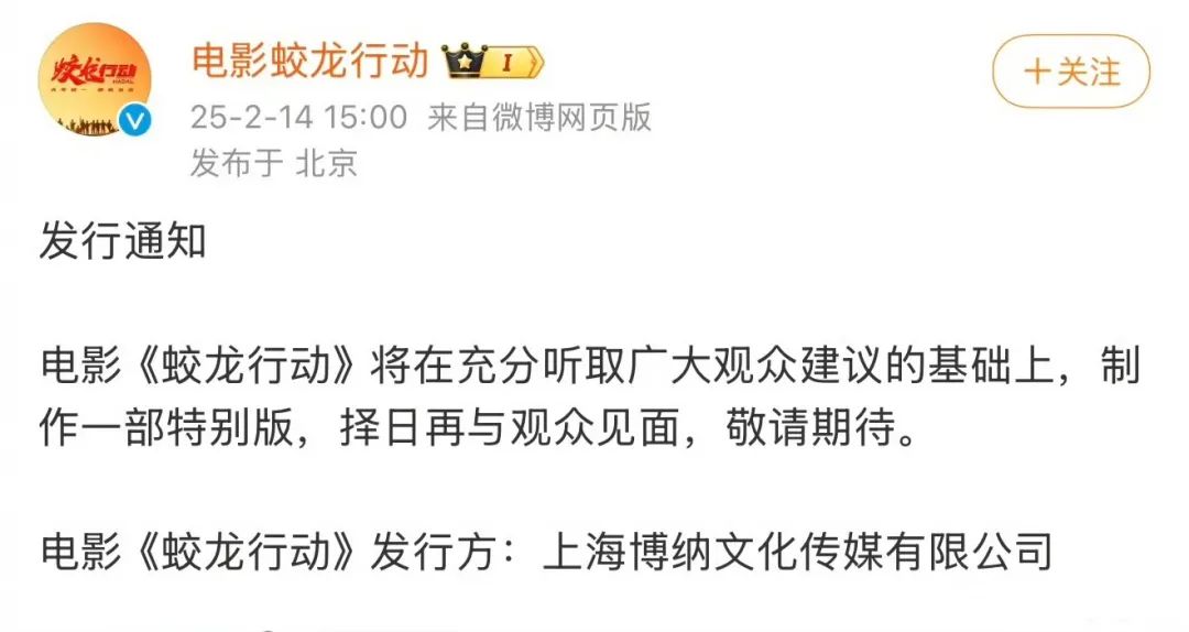 然而事实再次证明,鸡蛋是不能放在一个篮子里的。上映19天后官宣撤档,累计票房不足4亿元,《蛟龙行动》不仅没能扛起扭转局势的大旗,反而在2025年开年之际,就给博纳影业挖下了一个巨大的深坑,让公司原本就艰巨的扭亏任务变得更加遥遥无期。