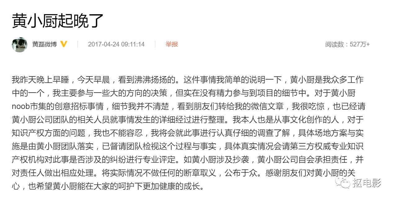 但是昨天活动刚刚结束,就有一篇名为《黄老师,黄小厨方案的钱我们不要了》的文章在朋友圈流传开来,阅读量迅速过了10W+,内容直指黄小厨抄袭盗用了他们的设计方案。