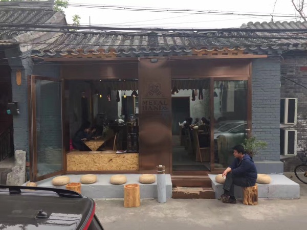 上图的大栅栏地区有专门的企业长期经营城市更新,资金到位,风格统一。而下图的某路边店铺,不过是把门的下半截糊上,改成了窗,实在难说城市风貌因此有了什么改善。