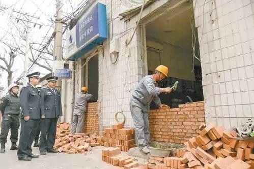 整治行动的方式也很直接:“开墙打洞”的逆过程,重新将店铺拆除,砌上围墙。