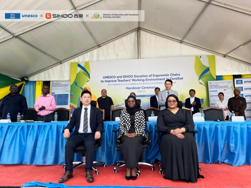2025年4月28日,在联合国教科文组织与深圳西昊智能家居股份有限公司的联合推动下,“改善坦桑尼亚教师工作环境捐赠仪式”于桑给巴尔岛隆重举行。此次活动以中坦建交61周年为背景,围绕联合国可持续发展目标中的“体面工作与经济增长”主题,向坦桑尼亚大陆及桑给巴尔地区教师捐赠数百余套价值超10万美金人体工学座椅及相关物资,旨在通过改善基础教育工作者的职业环境,缓解当地教师结构性短缺危机,推动教育公平与区域可持续发展。联合国教科文组织驻坦桑尼亚代表,桑给巴尔相关政府机构领导,中国驻桑给巴尔总领馆总领事李强华以及西昊智能董事长罗慧平、西昊智能亚非拉区总经理陈卓等人出席该仪式。