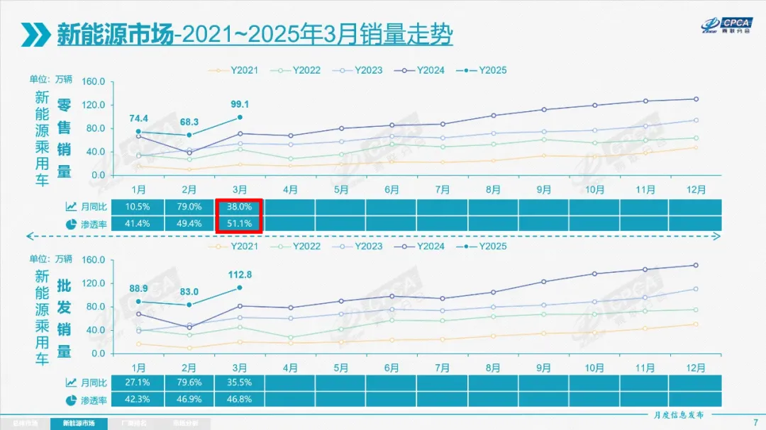 图/2025年3月新能源车零售渗透率 来源/互联网 新能源观截图