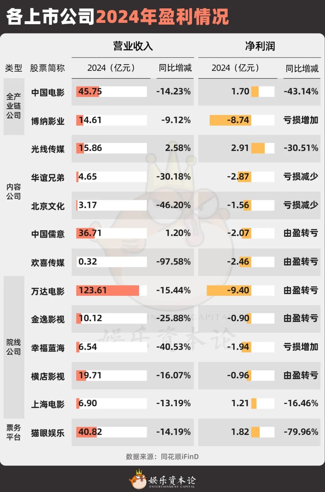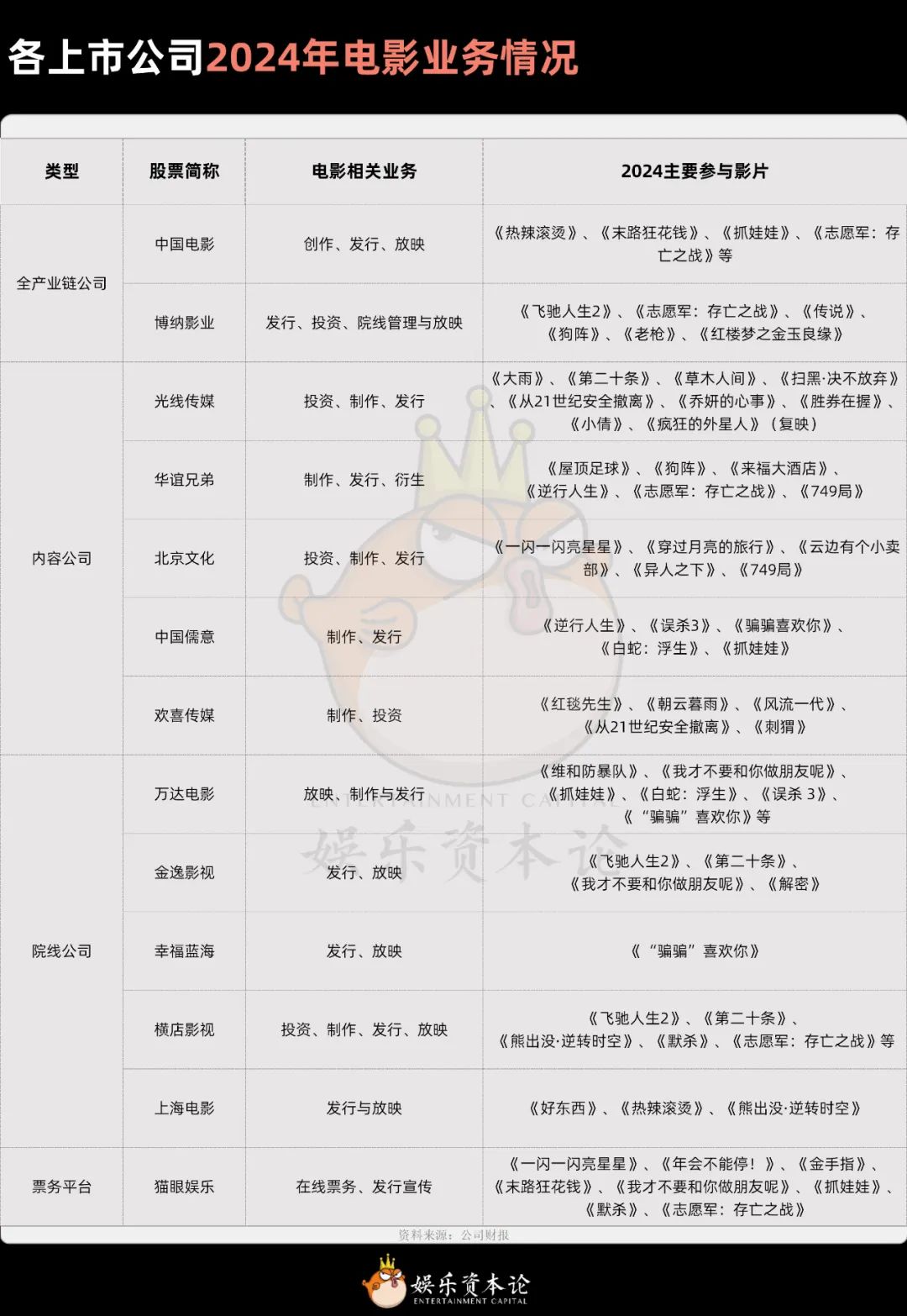 各上市公司2024年电影业务情况 资料来源:公司财报