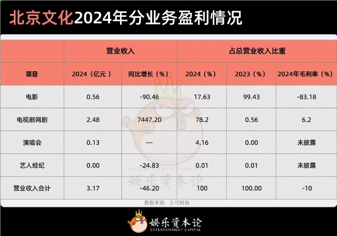 北京文化2024年分业务盈利情况 数据来源:公司财报