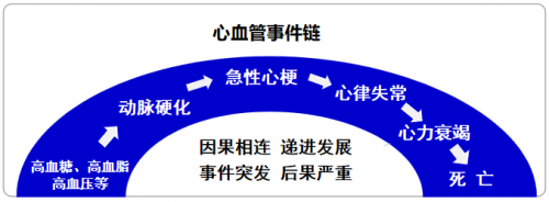 心血管事件链以动脉粥样硬化为病理基础,涵盖高危因素聚集、动脉斑块形成、心肌梗死、心律失常及心力衰竭等关键环节。传统防治策略聚焦单一环节或风险因素,难以阻断事件链的连续性进展。面对这一复杂疾病谱,急需系统性干预策略以实现从“治标”到“治本”的转变。