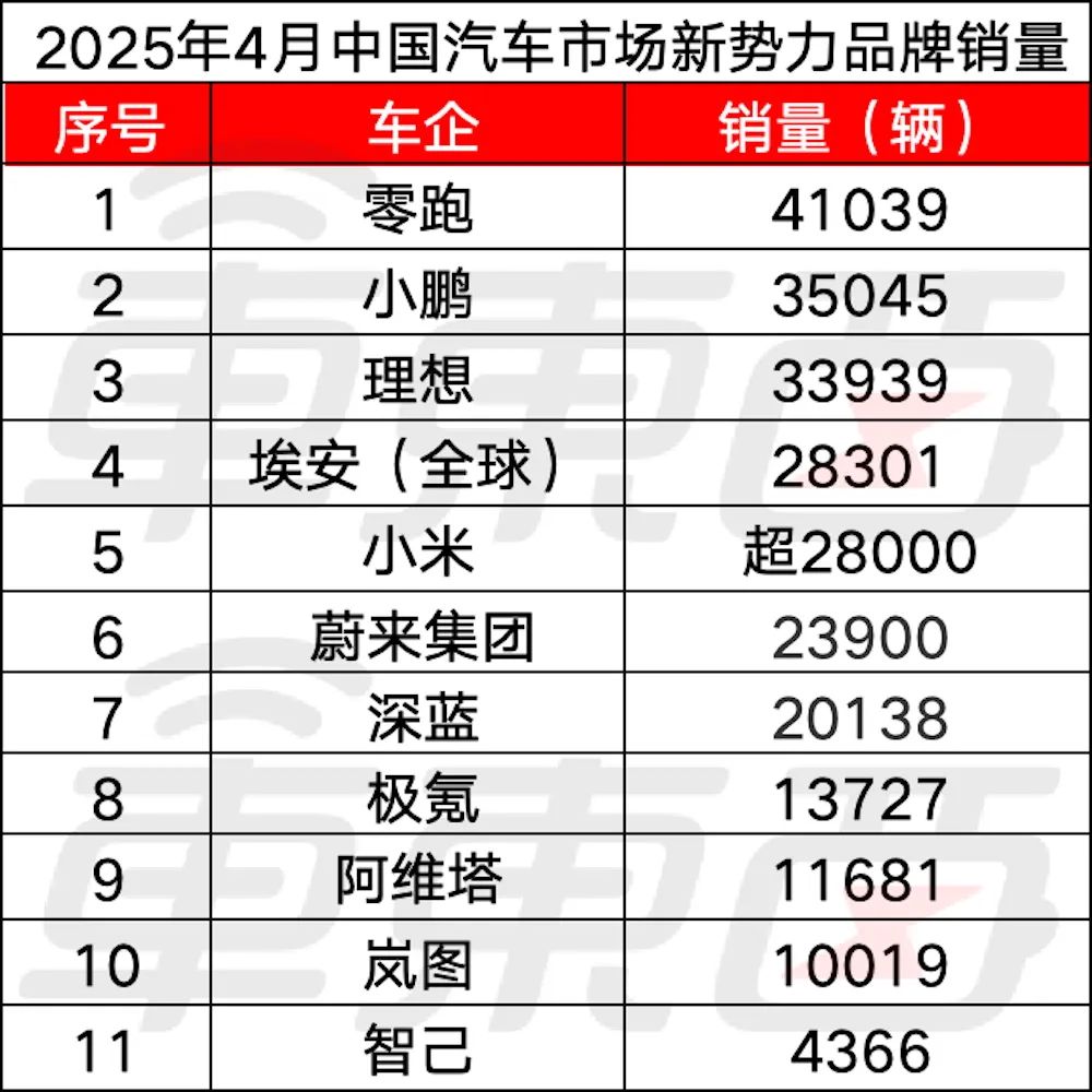 ▲中国汽车市场新势力品牌4月销量