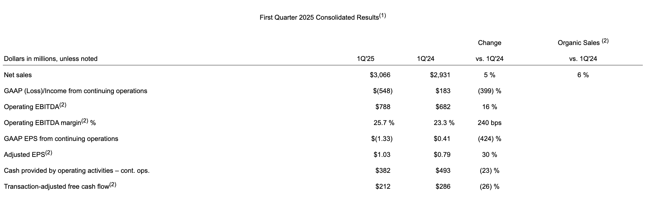 5月2日,杜邦公司发布2025年第一季度财报:净销售额为30.66亿美元,同比增长5%;经营性息税折旧摊销前利润(EBITDA)为7.88亿美元,同比增长16%;调整后每股收益为1.03美元,同比增长30%。