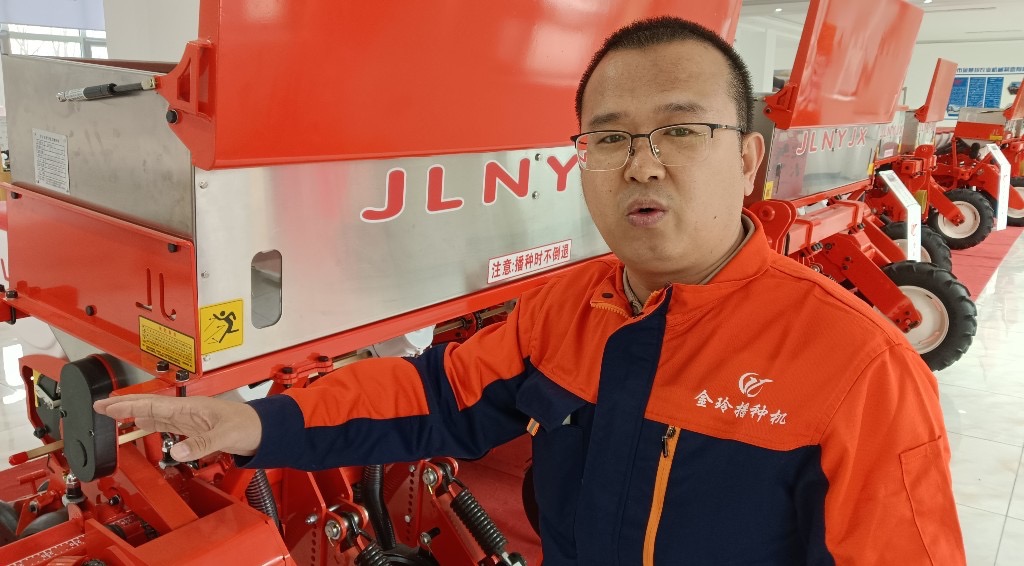 在北安市金慧玲农业机械制造有限公司产品展厅,总经理王文全滔滔不绝地介绍着产品:“我们每一台播种机都是根据用户耕地特点和特别需求量身定做的,产品质量、性能不输进口大牌播种机,价格却便宜太多。”、