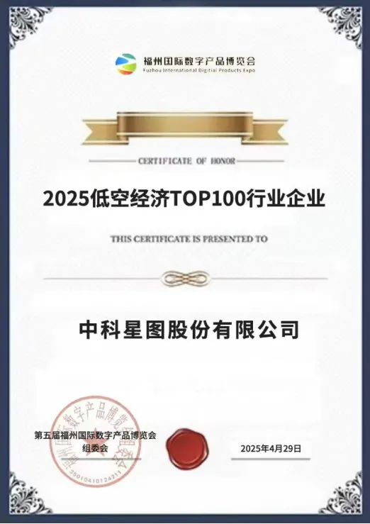此次大会同期举办的第五届福州国际数字产品博览会上,中科星图股份有限公司凭借低空经济领域的技术创新与生态布局,荣膺“2025低空经济TOP100行业企业”,进一步彰显行业地位。