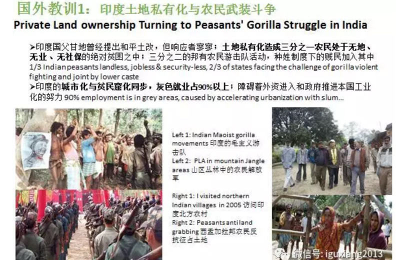 甘地也想搞土地改革,没搞成。土地私有化,三分之一农民无地成为贫困人口,就去搞游击队。土地改革毛泽东搞成了,邓小平二次土改也搞成了。所以中国下层社会相对稳定。