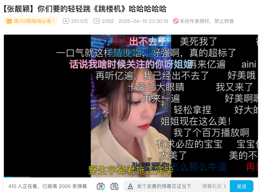 主流综艺如《天赐的声音6》选择《跳楼机》等网红神曲,本质是流量博弈下的必然选择。乐评人丁太升在其发布的视频中指出,缺乏前期宣发和戏剧冲突的《天赐的声音6》,正是依靠王源的明星效应与张靓颖、王以太翻唱的《跳楼机》才撬动话题——这首在短视频平台爆红的歌曲,天然携带年轻受众的注意力基因。