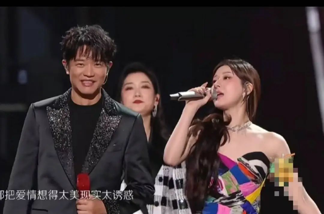 赵露思与凤凰传奇合唱的《全是爱》,因组合风格的反差被调侃为“吉祥三宝”;孙怡、乔欣、张天爱三位女星组成“失联复仇者联盟”,齐唱《劈你的雷正在路上》,其舞蹈设计充满了“甩掉渣男”的戏剧感;金晨、李斯丹妮等姐姐团翻跳的《Queencard》,以及Amber、程潇的《爱如火》,都高度还原了网络热点。娜扎则复刻了短视频舞蹈里的经典动作,嘴里唱着“恐龙抗狼”“我没K”等热梗,而张信哲演唱《悬溺》时出现的跑调忘词,更是成为热议焦点。