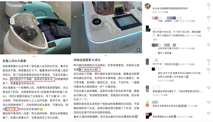 “洗不干净”的消费反馈无疑给AI洗头的核心竞争力——通过检测匹配不同洗头方式造成冲击。