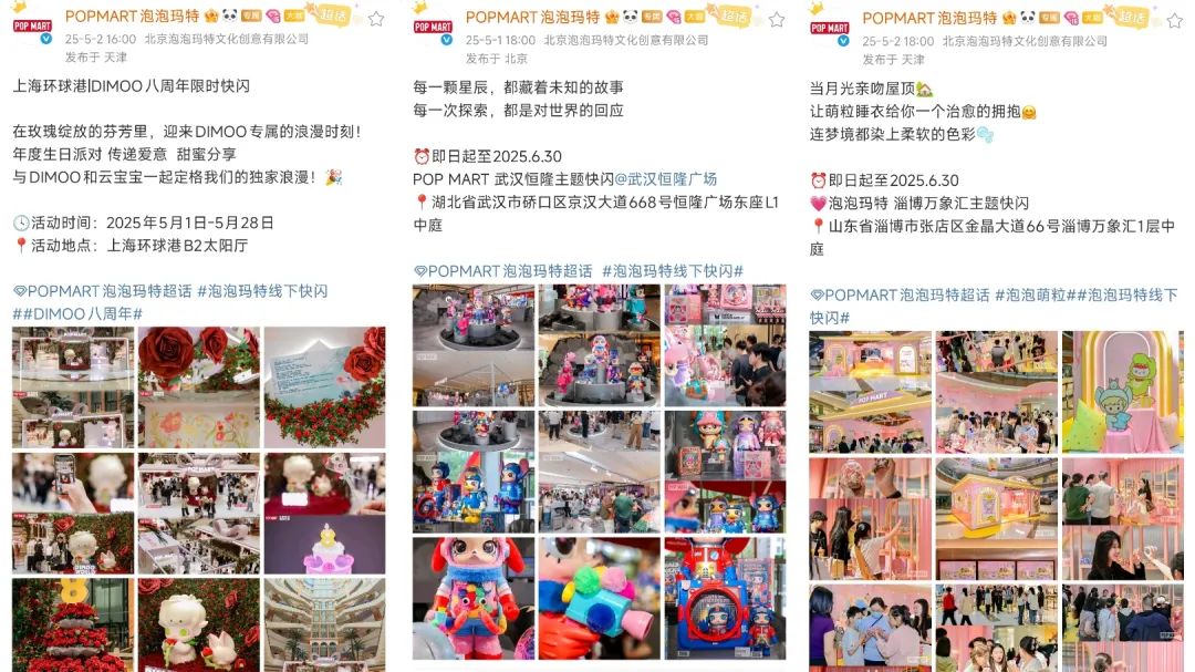 此外,随着快闪模式商业价值在市场中持续得到验证,其运作逻辑已日趋成熟。加之不少IP快闪的首发效应有所减弱,相较于早期品牌多采用“单点试水”的谨慎策略,当下越来越多的快闪活动选择同步登陆全国多个城市,以实现品牌声量与市场覆盖的双重爆发。