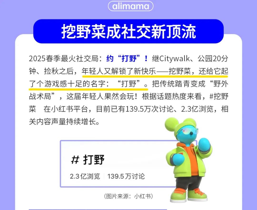 此前桨板、飞盘、陆冲、露营等小众户外运动火出了圈,这几年大家的爱好又更为丰富——网球、高尔夫、马术等不少精英运动走入大众视野,也有很多人倾向于门槛低、装备要求低、社交性较强的项目,如登山、钓鱼、攀岩、越野跑,特别是“打野”(徒步去周边挖野菜)也成了今年春天最流行的社交方式。