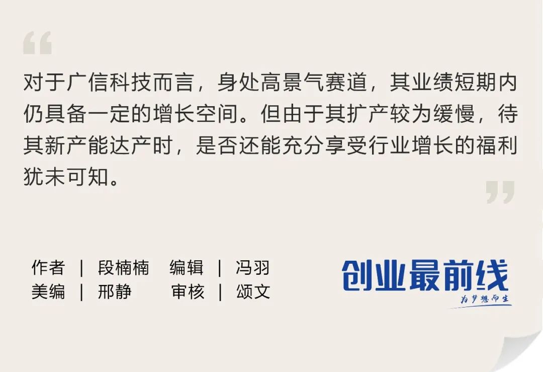 对于广信科技而言,身处高景气赛道,其业绩短期内仍具备一定的增长空间。但由于其扩产较为缓慢,待其新产能达产时,是否还能充分享受行业增长的福利犹未可知。