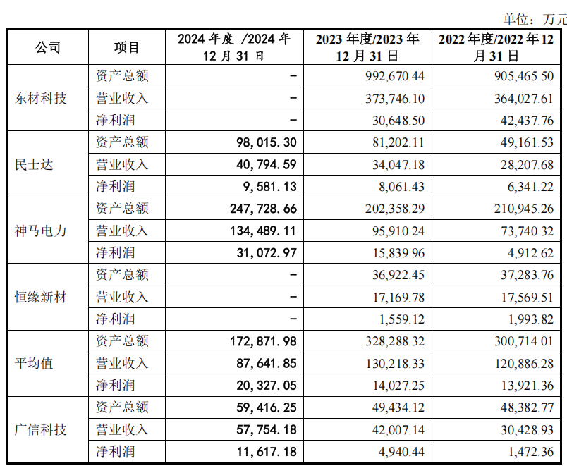该营收及利润增幅引起交易所关注,广信科技招股书显示,2022年至2024年,其可比公司净利润平均增长幅度为50%左右,而广信科技净利润增幅超680%。
