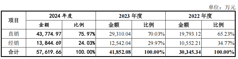 除未盖章外,公司来源于经销商收入的真实性也被交易所质疑。从收入来看,广信科技是一家以直销为主的企业,经销占比并不高。