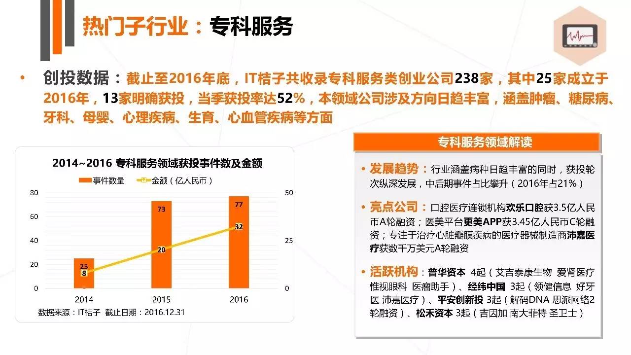IT 桔子针对医疗健康领域热门子行业进行了盘点。