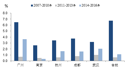 不过,比较一下上述城市过去两年的GDP走势,会发现大部分城市2016年的经济增速低于2015年,那么,房价走势是否也不会长期与经济增长相背离?从长期来看,房价与人口流向的正相关性更大些。