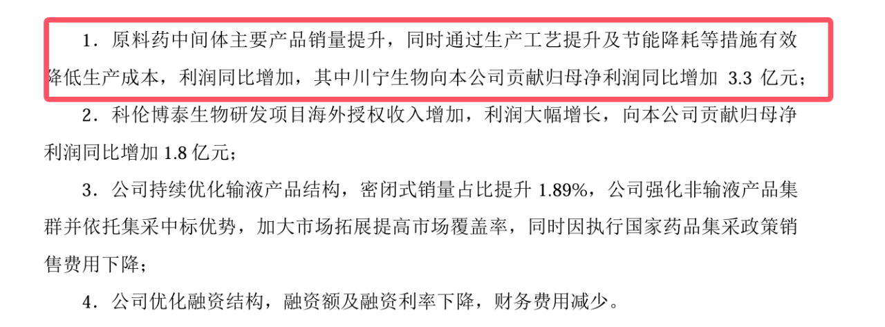 科伦药业财报明确指出,川宁生物是推动公司业绩增长的关键动力。