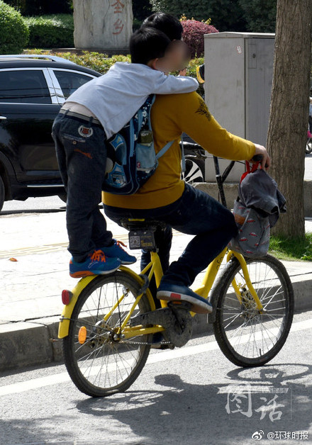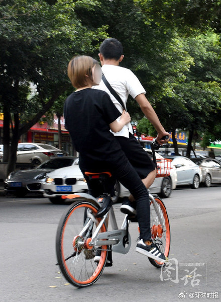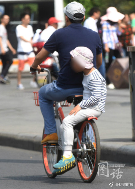 最近,成都的共享单车界,出现一波“花式载人”的节奏:有的把小孩放在前车框里,有的小孩站在车架上,有的直接坐在车后挡泥板上,还有成年人同骑一辆共享单车……