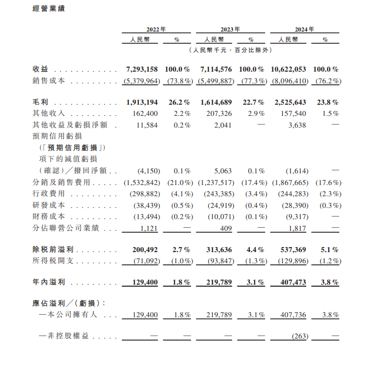 2024年,三只松鼠录得营业收入为106.22亿元,同比增长49.3%;净利润为4.08亿元,同比增长85.51%。