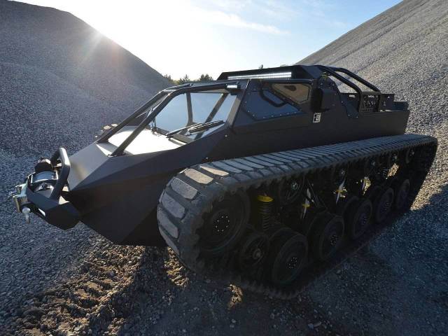 不负众望,导演终于请来了民用坦克,Ripsaw EV2履带车。友情提示,这辆车依旧是给土豪们准备的,所以别翻自己的余额和工资单了。这辆小野兽出自豪威科技公司,前身曾为军队研发的履带式快速突击车。轮式车虽然拥有速度优势,但是爬坡越野性能不如履带车。Ripsaw EV2使用的是柔性履带,和坦克上咯吱响的双销金属履带不同,这种柔性履带是整体结构,静音性和高速性都很出色,看看它在泥地里甩泥巴的样子就知道了。动力方面,电影里的车型马力达到750匹,和超跑在同一级别,暴走起来估计普通车连它的尾灯都看不见。