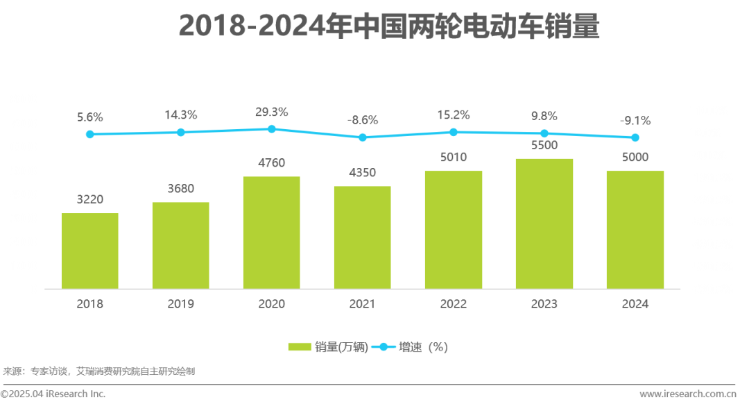 2025年《政府工作报告》指出,要加快发展绿色低碳经济,完善支持绿色低碳发展的政策和标准体系,营造绿色低碳产业健康发展生态,培育绿色建筑、绿色能源、绿色交通等新增长点。两轮电动车作为一种中国特色的、高效的、环保的、经济的出行交通工具,在我国居民交通出行中占有重要的地位。中国自行车协会的数据显示,截至2024年,中国两轮电动车社会保有量超4亿辆。我国既是全球最大的两轮电动车消费国,也是全球最大的两轮电动车生产国,除满足本国消费外,两轮电动车也销往海外市场。2024年,我国两轮电动车销售量约为5000万辆,随着新国标实施落地,将为两轮电动车发展带来新动力,有望在未来几年重回增长轨道。